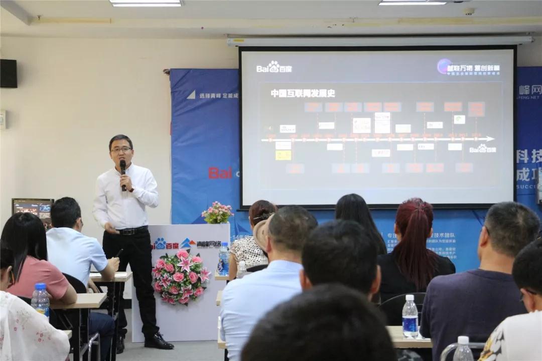 洛陽市青峰網(wǎng)絡(luò)科技有限公司百度推廣運(yùn)營(yíng)總監(jiān)張浩陽先生發(fā)表主題演講,以一張中國(guó)互聯(lián)網(wǎng)發(fā)展史的圖片切入,講解了以智能技術(shù)為核心的新形勢(shì)下,洛陽的企業(yè)家究竟怎樣讓自己的品牌迅速突出,怎么去選擇性價(jià)比更高的商業(yè)解決方案來助力自己的成功。