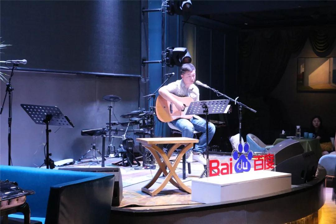 文藝的小哥哥抱著吉他在臺(tái)上自彈自唱